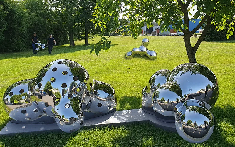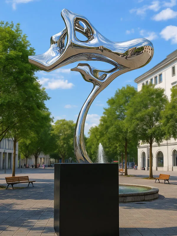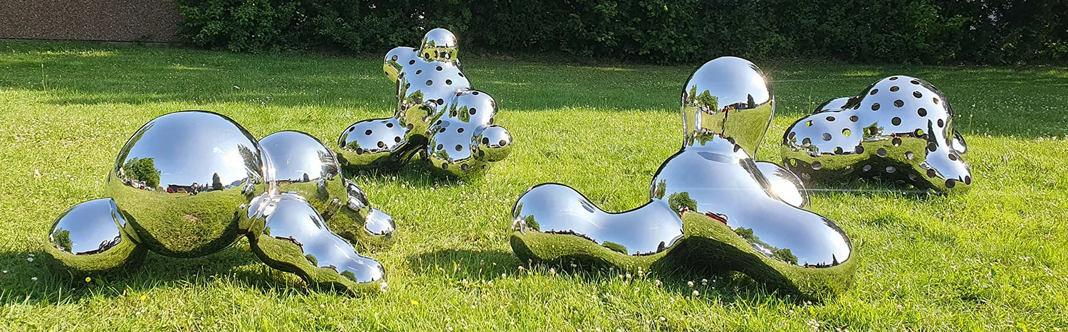 Edelstahlkunst verbindet edle Optik mit außergewöhnlicher Beständigkeit. Der dauerhafte Spiegeleffekt verleiht jeder Skulptur zeitlose Eleganz und macht sie zu einem glänzenden Highlight – innen wie außen.