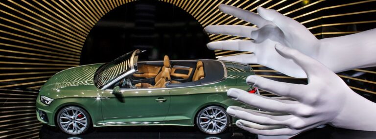 Riesenhände am Messestand überraschen mit einer Berührung der besonderen Art Auf der international bedeutenden Automobilfachmesse IAA in Frankfurt 2019 hat AUDI sein neues Cabrio-Modell besonders auffällig präsentiert: der Audi A5 40 TDI quattro wird durch zwei weiße Riesenhände in Szene gesetzt. Der Messestand wird durch diese Inszenierung zu einem besonderen Hingucker, zu dem wir unseren … Riesenhände für IAA-Messestand weiterlesen