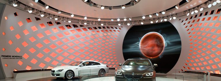 Messewand setzt neue Highlights Die beiden neuen BMW-Modelle fahren zwischen unsere zweigeteilte Highlight-Messewand ins Rampenlicht, um sich auf dem „Auto-Salon“ in Genf in Szene zu setzen. Der Clou an diesem extravaganten Hintergrund sind die 183 rautenförmigen Lichtausschnitte. Die Wand hat die Form zweier Kugelausschnitte. Die passende Kugel dazu hätte einen Durchmesser von 16 Metern. Eine … Highlightwand für BMW weiterlesen